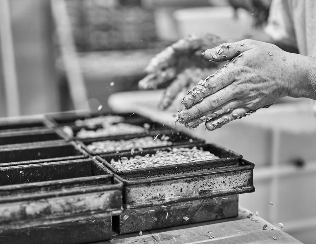 Kurz gesagt ist Sauerteig ein natürliches Backtriebmittel – und ein lebendiges. Verschiedene „gute“ Hefen und Milchsäurebakterien halten ihn in Gärung und verdrängen unerwünschte, „schlechte“ Mikroorganismen. Das Besondere an unseren Sauerteigbroten und -brötchen ist vor allem ihr einzigartiger Geschmack. Aber nicht nur der Gaumen kann sich freuen, sondern auch der Bauch. Denn bei der Gärung werden schon vor dem Backen Stoffe abgebaut, die oft für Verdauungsbeschwerden sorgen. Backwaren mit Sauerteig sind also auch für empfindliche Genießer sehr bekömmlich. Noch ein Plus: Sauerteig hält Brot und Brötchen extralange frisch.